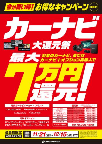 カーナビ+オプション品合わせて最大7万円の還元となります。