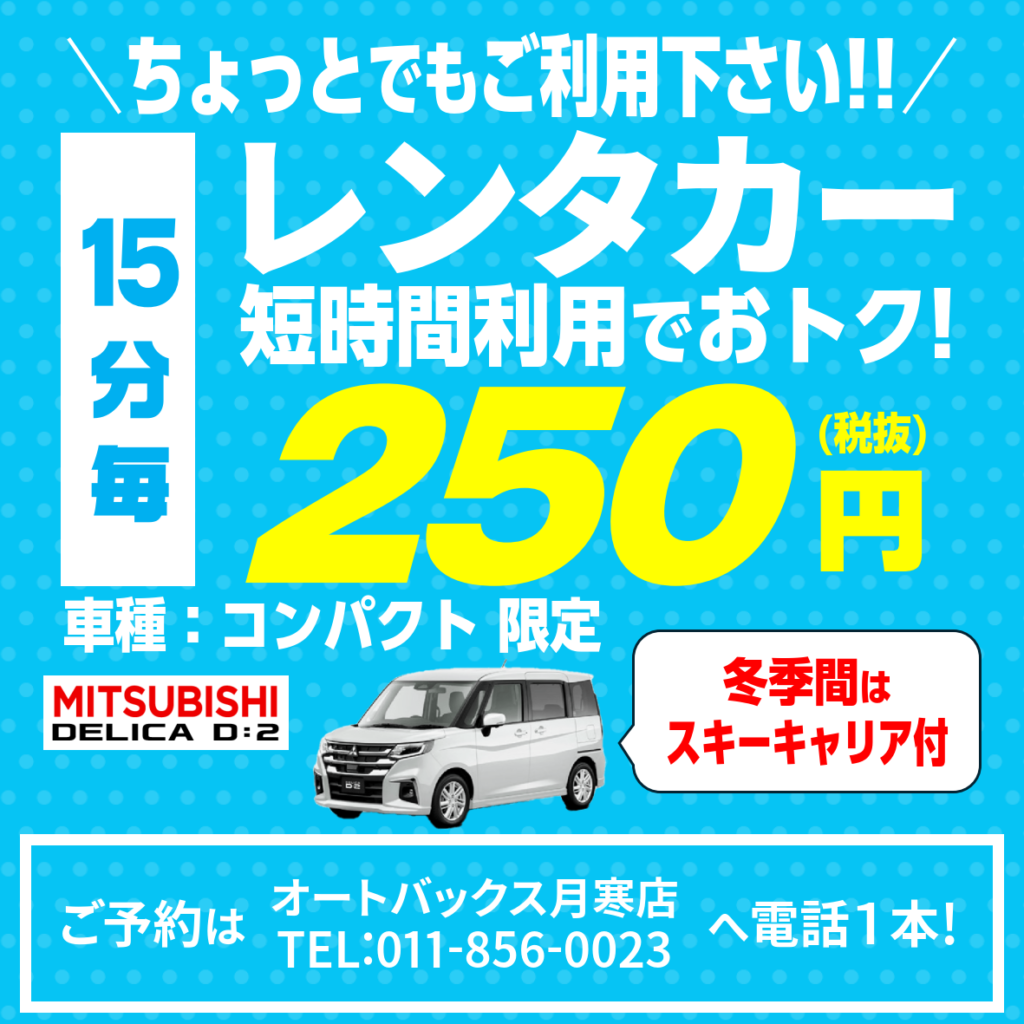 【ちょい乗り歓迎!!】レンタカー15分・税抜250円~で!!【短時間利用に】