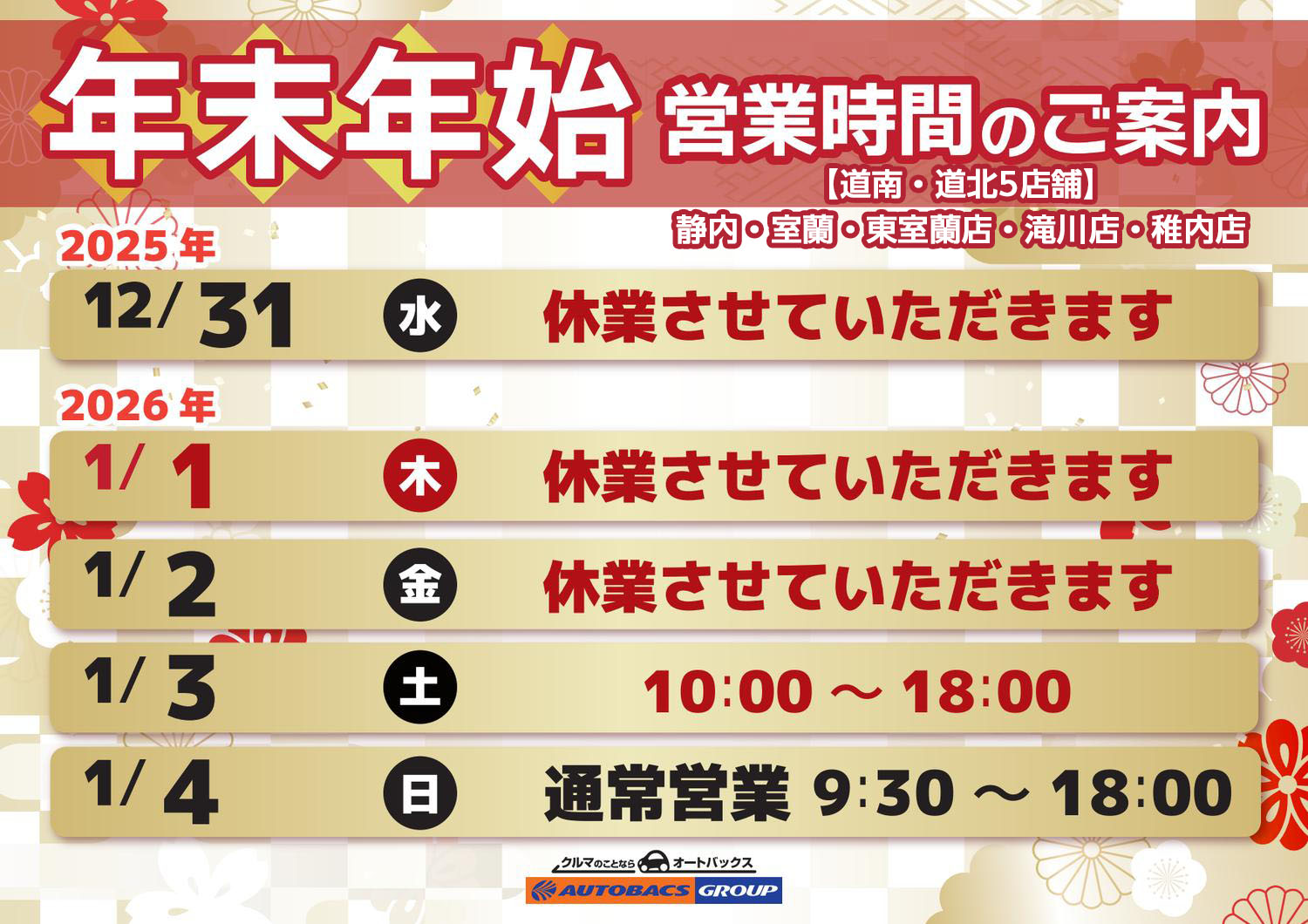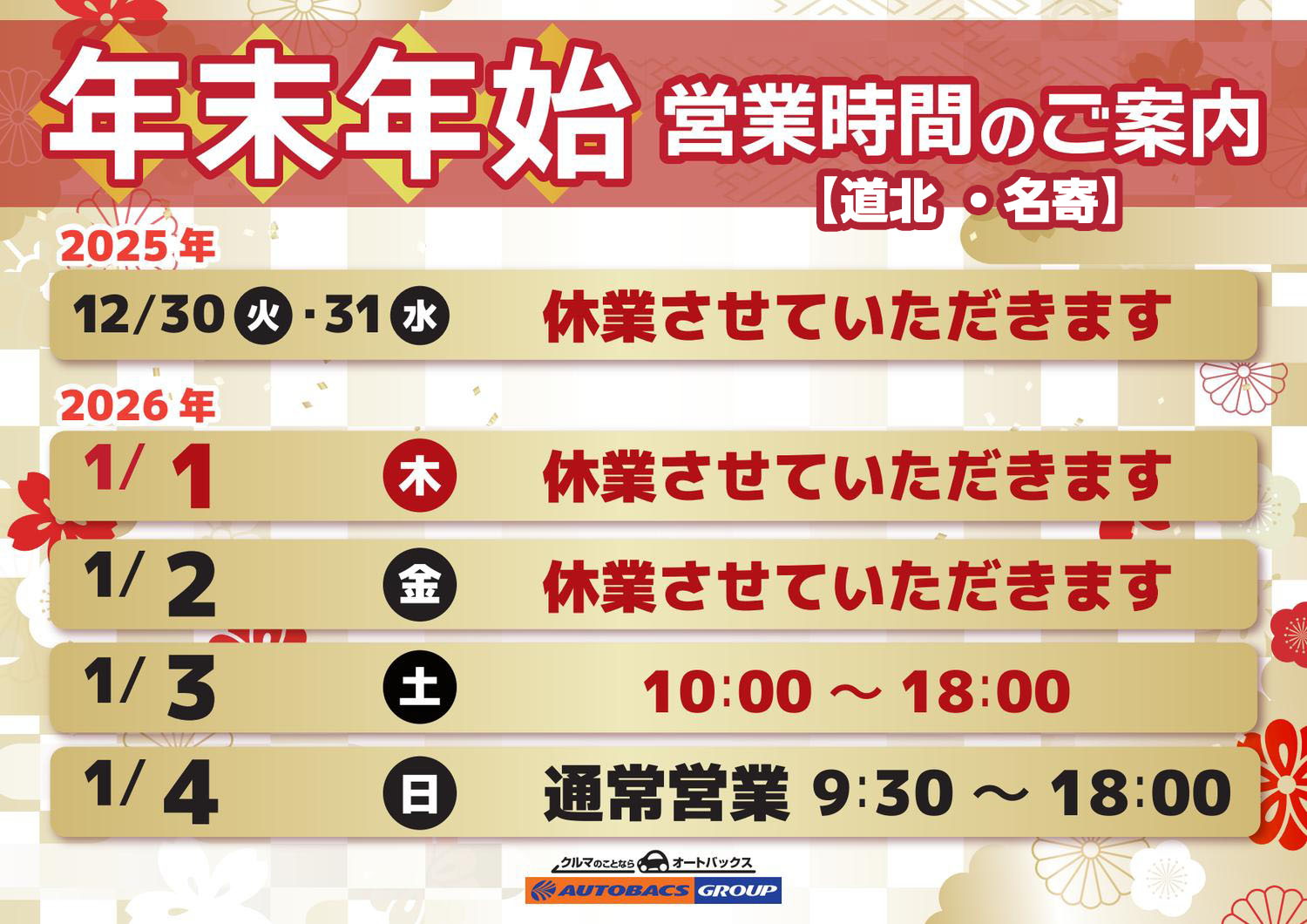 ・名寄 のみ 12月30日(月)~1月2日(金)