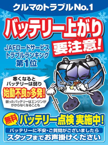 この時期はバッテリーにとっては一番負荷が多い時期となります。