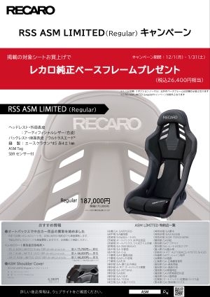 特典はレカロ純正ベースフレーム1セットをプレゼント🎁(定価26,400円のベースフレームです。それ以外の場合の差額はお客様のご負担となります。)